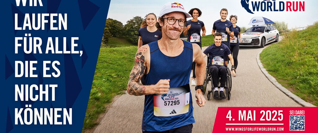 Am 4. Mai 2025 findet ab 13 Uhr der globale Charity-Lauf "Wings for Life World Run“ unter dem inspirierenden Motto: „Wir laufen für die, die es nicht können“ statt. Teilnahme- Möglichkeiten gibt es auf die verschiedensten Art und Weisen. Seid alle mit dabei!