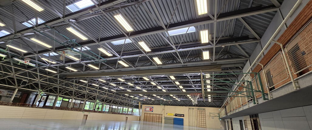 In den Osterferien wurden im Rahmen einiger Sanierungsmaßnahmen in der Sporthalle Korntal auch die Beleuchtung komplett erneuert und auf die neueste LED-Technik umgerüstet. Alle Sporttreibenden können sich auf eine gute und für alle Sportarten optimierte Beleuchtung freuen!
