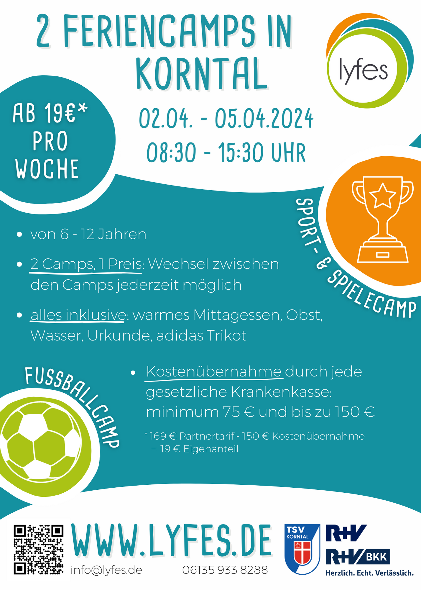 Zusammen mit unserem Kooperationspartner Lyfes ( www.lyfes.de ) finden in 2024 weitere Sportcamps statt.